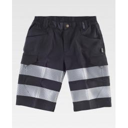 • Une bande réfléchissante discontinue thermo-adhésive sur les manches et deux sur la poitrine et dans le dos de différente taille. Bande décorative personnalisée sur une épaule.